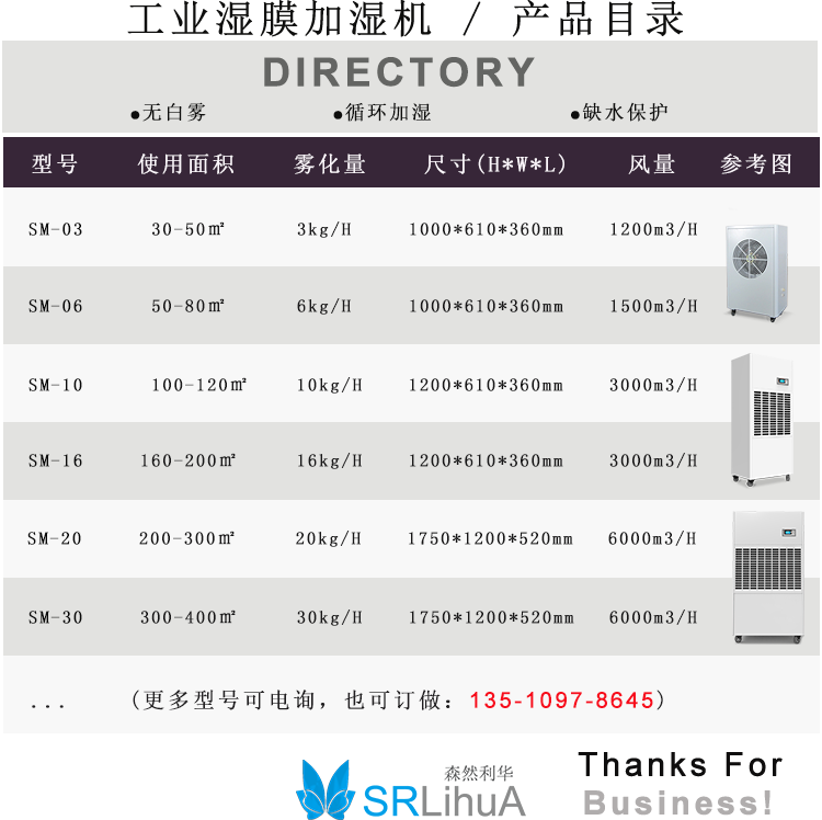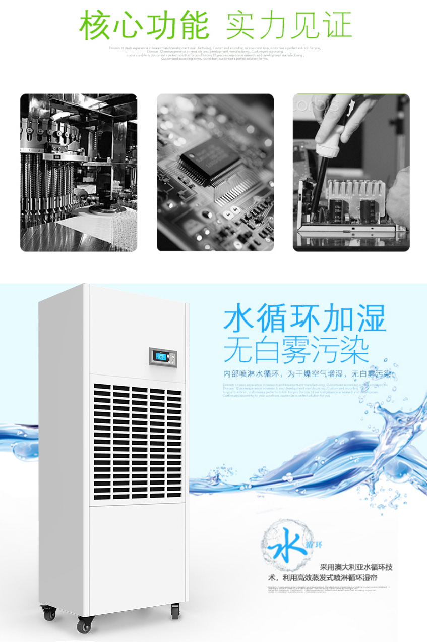 电源:220V/50Hz 加湿量:10kg/H 风量:3000m3/H 储水量:30L 配置:水位保护,手/自动补水,湿度传感器,水质过滤器。 加湿面积:100-120㎡(高2.6m)